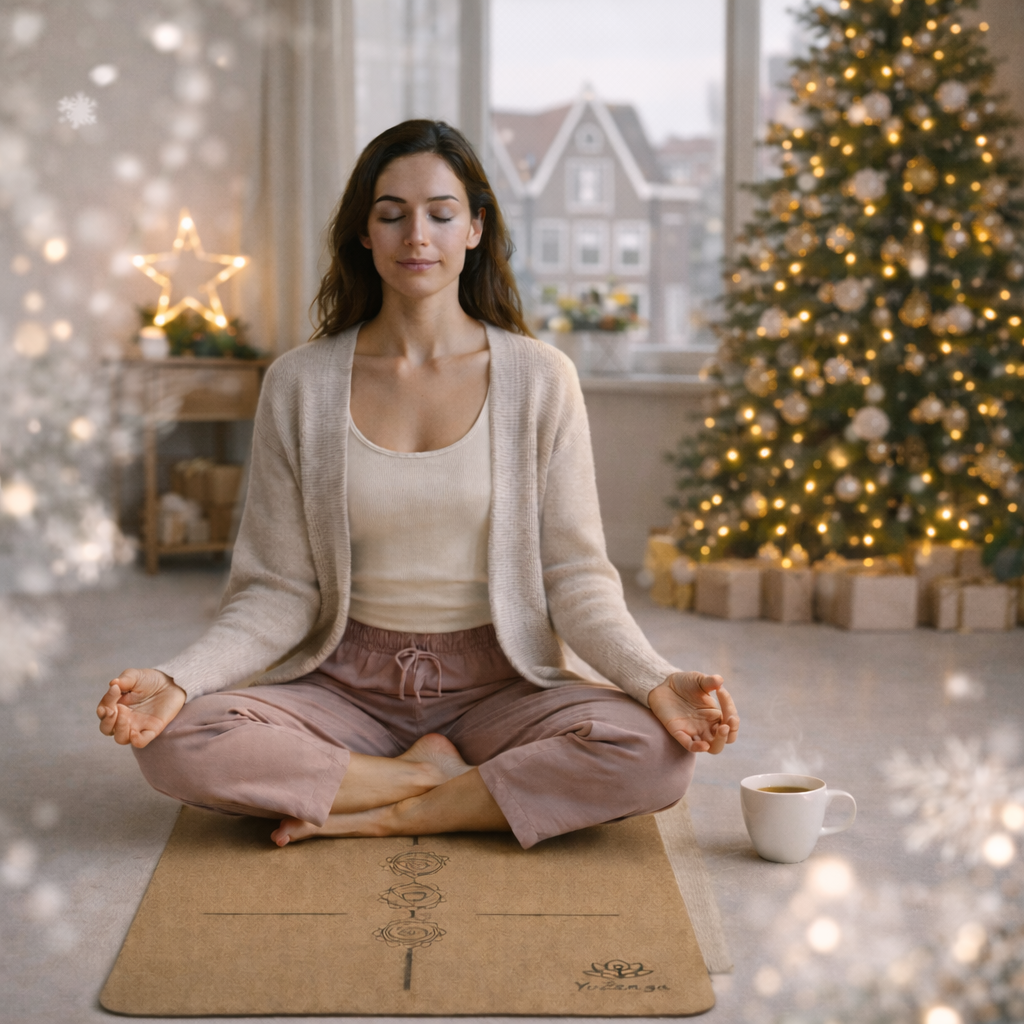 Yoga hoeft in december niet actief te zijn. Het mag gedragen,stil en herstellend.